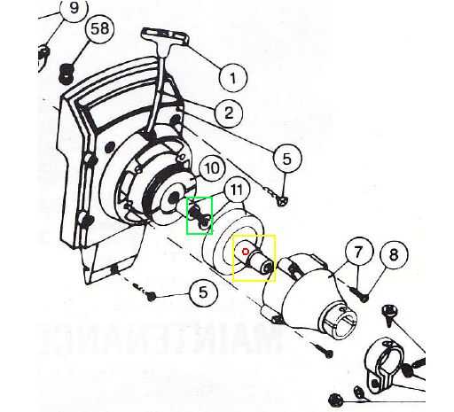 Se trata de un despiece del manual de la mala hierba trimmer. He añadido los artículos de color. El primer paso fue para asegurarse de que la campana de embrague (cilindro más grande entre el verde y amarillo cajas, la mayoría de las tres líneas de #11 a la derecha) podría no deslice hacia delante de la Asamblea de pesos centrífugos (#10) en el cojinete de embrague (pequeño cilindro la izquierda de la caja verde) y el eje conectado al motor (porción de cilindro negro en el cuadro verde). He perforado un agujero (círculo rojo) a través del montaje de la campana de embrague y sólo un poco en el eje negro de la caja verde. Había roscado el rojo agujero para un tornillo de ajuste. Se trabó el tornillo de fijación en su lugar con una soldadura de tachuela. Archivé la soldadura en el tornillo de fijación suave para que no se levanta por encima de la superficie del eje porción de la campana embrague. Si alguna vez tengo que desmontar el embrague, se perfore la soldadura de tachuela de tornillo de fijación.