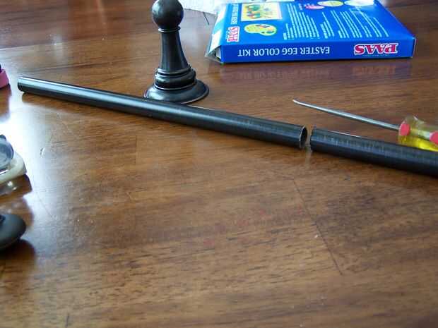 A continuación debe cortar la barra a medida. Mina corto de 11 3/4 pulgadas para que todavía se puede ver la parte superior del soporte cuando está cargado con dos rollos. Utilice el archivo para suavizar los bordes ásperos.