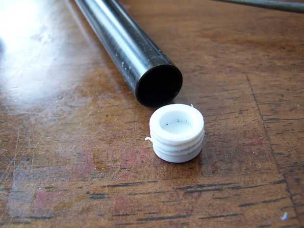 Taladrar un agujero en el tapón de goma para sujetar el pomo decorativo.  Usé un taladro eléctrico de mano para poner un agujero en el tapón lo suficientemente grande para un tornillo 10-32. Broca de 1/8 a 5/32 debería hacer bien.