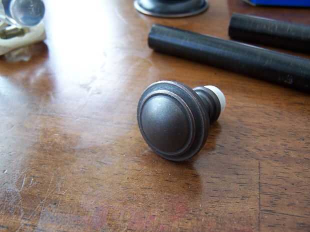 Aquí es lo que parece la perilla del extremo decorativo.  Asegúrese de que está centrada en el enchufe.