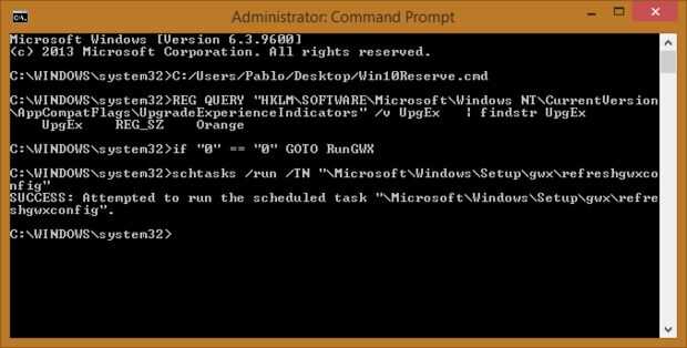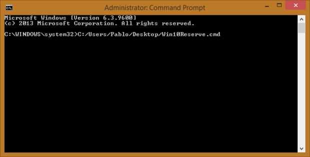 Tipo de ahora en la ruta de tu archivo y pulse Entrar. En este ejemplo, salvé en mi escritorio, por lo que sería la ruta C:/Users/Pablo/Desktop/Win10Reserve.cmd.