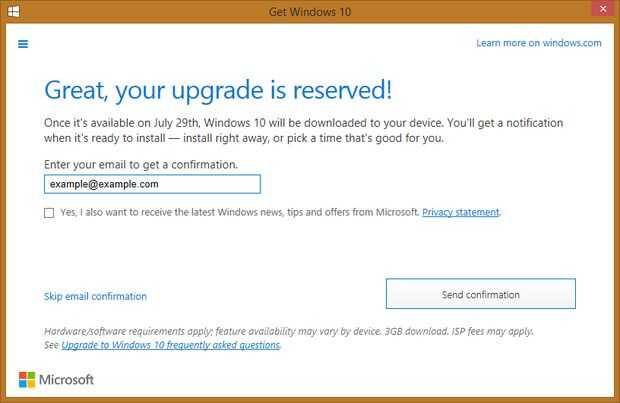 Ahora lo único que tienes que hacer es haga clic en el icono en, haga clic en "Reserva de tu habitación", opcionalmente poner su correo electrónico y haga clic en "Enviar confirmación". Eso es todo. Ahora sólo tienes que esperar hasta el 29 de julio para recibir la actualización.