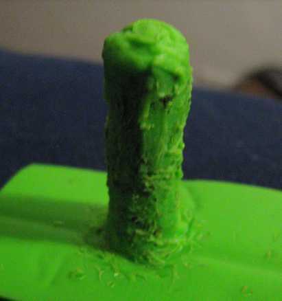 Porque HDPE no tiene el calor mejor transferir características, tardó unos 40 minutos para completar este paso para una pieza de 1.5" de largo. Utilizando la terminología anterior, tomó una franja cuadrada y bordada-soldado a la pieza base. Había doblado sobre sí mismo varias veces y plana soldada con autógena en un cilindro.