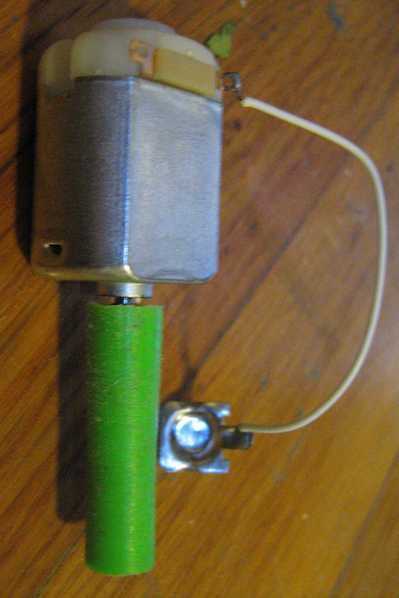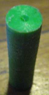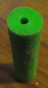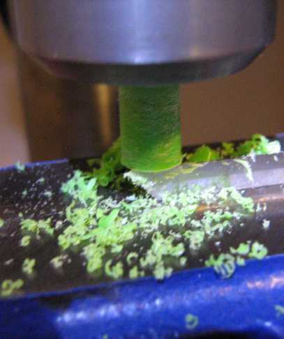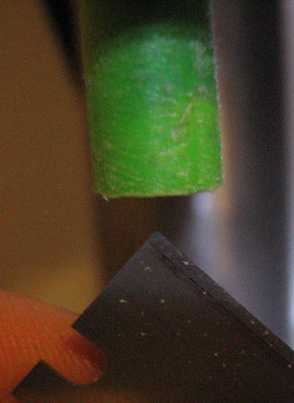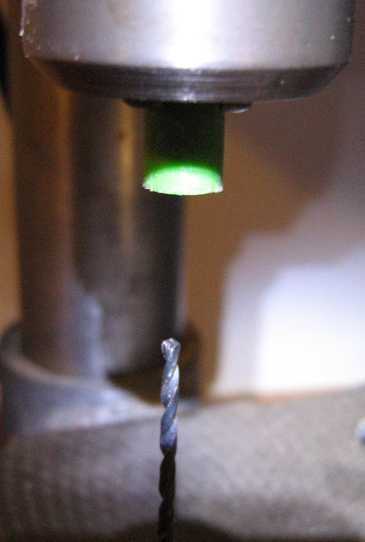 Aplanado los extremos del cilindro arrastrando una lámina de cuchillo de utilidad, asegurada en un vicio, en la parte inferior del cilindro como se rotar. Para marcar el punto central de la varilla, coloqué el punto de una hoja de cuchillo de utilidad contra el extremo del cilindro de rotación que tiende a empujar el punto hacia el verdadero eje de la rotación. Una vez marcado, sostuve un taladro, ligeramente más pequeño que el eje del motor, debajo del cilindro, obligándolo a perforar un agujero de centro.