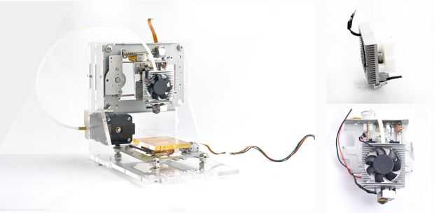 El filamento, después de ser arrastrado hacia la extrusora por el conductor filamento, entonces se alimenta a la cámara del calentador o el extremo caliente. Entre unidad de filamento y el extremo caliente, el filamento es guiado dentro de un tubo de teflón flexible.