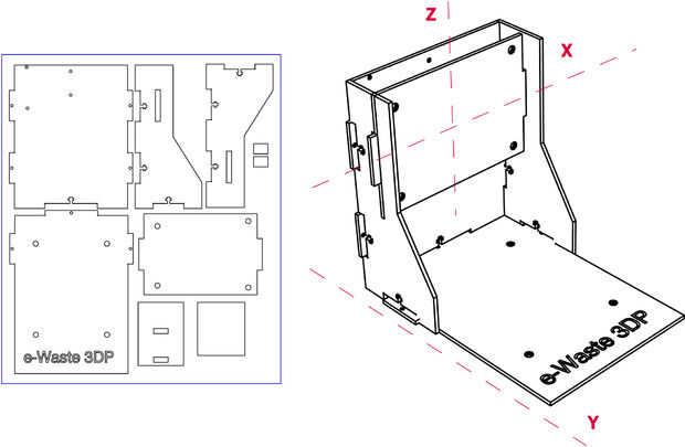 Láser corte archivo: https://dl.dropboxusercontent.com/u/67249288/e-Waste/CAD_Frame/e-waste_laser_frame.dwg
