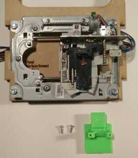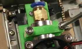 Coloque el soporte de la hotend en la cabeza de lectura/escritura de disquetes y fíjelo con dos tornillos pequeños que pueden ser reciclados desde el desmontaje del DVD.