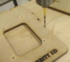 Posición de la X / Z Drive (DVD y disquetera del paso 3) en el centro de la pieza de madera con la manija.
