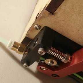 Añadir ahora el tornillo de tubo PTFE de latón a la extrusora. Corte el tubo PTFE blanco a un tamaño conveniente e introducirlo en la tuerca de latón.