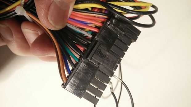 Nota: Si utiliza una fuente de PC vieja, necesita los conectores verdes y negro para que funcione a corto! Puede utilizar un cable de puente como se muestra en la imagen o puede utilizar un simple clip para lograr el mismo resultado.