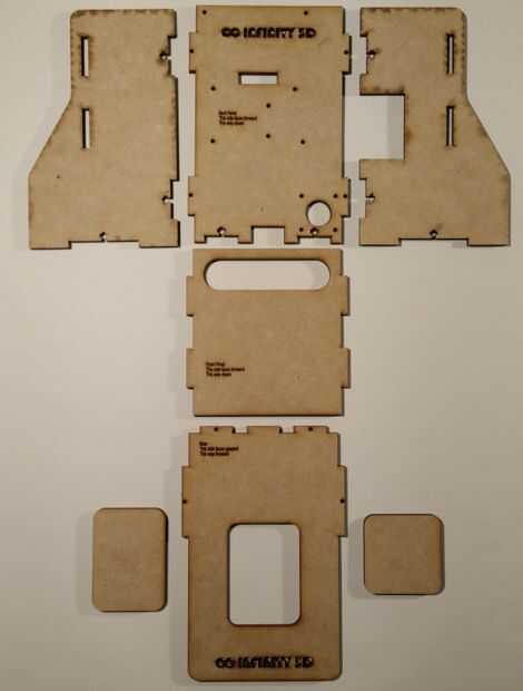 Antes de comenzar con el montaje de la curiosidad, es una buena idea colocar el marco sobre una mesa plana y quitar todas las piezas innecesarias. Esto le dará una buena comprensión del panel que va donde. Los paneles son laser-corte de tal manera que puede montar incorrecto mientras mantienes el logo hacia adelante.