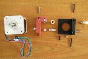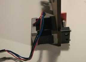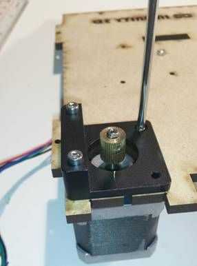 Conecte la Nema 17 Motor al panel posterior del bastidor. Observe la dirección! Fíjela con tres tornillos (ver foto):