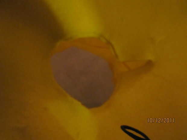 La parte superior del "cañón" tiene una "tapa" redonda con un agujero y ranura detrás de la cabeza. Traza el aro superior con cuidado y añada 1-1/2 pulgadas todo alrededor para la costura. Hacer su círculo tan simétrica como sea posible. Hacer dos círculos idénticos. Coserlas con una apertura pequeña por lo que puede volver a revés. Entonces trazar un círculo más grande que el cuello de su hijo (uso un tazón de fuente) y cortar el círculo. Hacer una abertura de 2 pulgadas de largo en el círculo más pequeño para que pueda deslizarse cómodamente sobre la cabeza. Puede dejar los bordes del círculo interior plegadas.