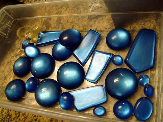 Cuando empecé a hacer mi traje de Umi, pronto se hizo evidente que tendría que hacer mis propios moldes personalizados. Generalmente puede comprar o encontrar algo a formas comunes de gema, pero a veces el tamaño que usted necesita no es comercialmente disponible. En las fotos, todas la gemas frente tabardo, venda gemas y gemas de cincher de la cintura fueron hechas de moldes personalizados usando caucho de silicón de Smooth-On. (Los pequeños óvalos y gemas de pequeño círculo se realizaron desde bandeja de fundición de resina de Michael y una bandeja de pintura $1 genérico respectivamente.)