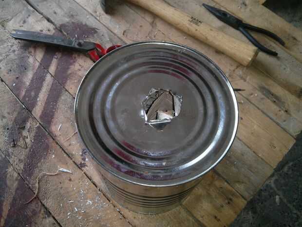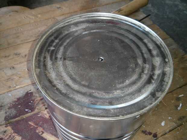 Como se puede ver en la foto, no utilizo latas de pintura para los míos, como no tener ninguna a mano y terminaron usando latas de galón de café viejo. Hacer, sin embargo recomiendo usar las latas de pintura desde mantenerlos aire apretado es una gran preocupación, sin embargo si todo se puede encontrar es latas recicladas, pueden ser hechos para trabajar. Para los míos, simplemente me corte el fondo de una lata de segunda y había utilizado como una tapa. Latas de café vienen con un labio ancho interior que proporciona un buen, aunque no son perfectos, sello para el aire. Para el recipiente más pequeño, simplemente usé una vieja lata de sopa. No me molesto en quemar el trazador de líneas plástico de ella ya que iba a suceder de todos modos durante la extracción y no afecta el producto final.