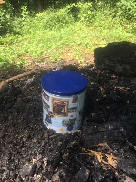 Después de que el fuego fue adecuadamente alrededor de la lata lo dejo quemar para cerca de 40 minutos antes de retirarlo. Para eliminar el yo simplemente y con cuidado golpeó la madera detrás. Luego suavemente bajé la tapa y era capaz de agarrar la lata con un guante de piel de ciervo y de la jarra. Después de unos minutos pasa la jarra esté lo suficientemente fría como para extraer rápidamente el agujero.