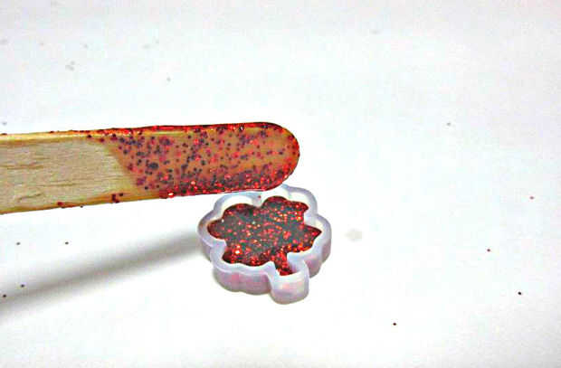 Con su palito, raspar la resina en los moldes.