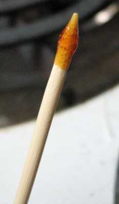 En la tercera etapa, establecer la deepfryer a 'alto' 350-400 º f. A esta temperatura, le eliminiate la mayoría de los compuestos orgánicos no-resina. Burbujeo debe ser minúsculo hacia el final. Para determinar si esta fase es completa, utilice un palillo de dientes para la mezcla. Verifique que la muestra en el palillo de dientes no es pegajosa, y que se desmorona con los alicates en un polvo de color. Cuando termine, apague la freidora y espere que se enfríe al tacto.