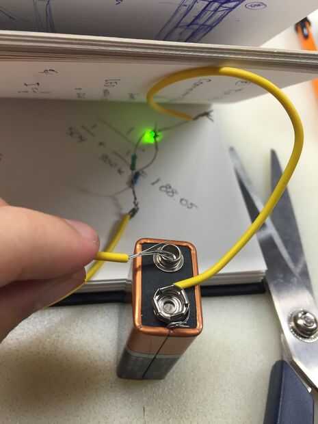 Ahora tendremos tomar nuestro foco e Sensory el lado positivo y el negativo (el positivo siempre es el más largo) pues tendremos conectar positivo con positivo y negativo con negativo, pero antes tendremos atar nuestra resistencia, no importa si la queremos poner en el extremo positivo o en el negativo, y después tomaremos uno de nuestros pedazos de cable y lo ataremos en el otro extremo de la resistencia. Haremos lo mismo con la otra pieza permiso de cable pero ahora lo ataremos directamente al extremo libre del foco LED.