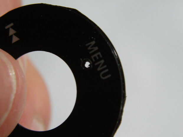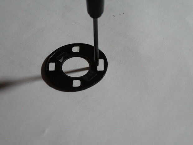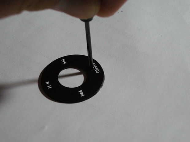 Lo primero es hacer el agujero en la rueda de clic. Sólo usé un destornillador probablemente puede utilizar cualquier número de cosas.