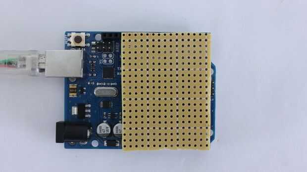 La forma más sencilla de soldar los cables y componentes entre sí es con un pedazo de tablero de perf. Este permite que montar las piezas donde deben ser y hacer personalizado suelde las conexiones entre ellos. La Junta de perf entonces puede conectarse a la placa Arduino con los cables de puente o pins de cabecera.