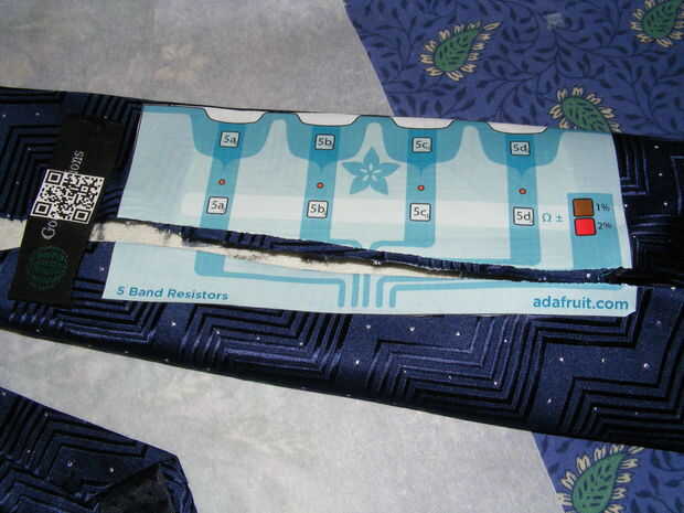 En la parte posterior de la corbata, la transferencia de bled sobre el respaldo de la costura de Unión. Apliqué en el lugar y luego corte abierto después de la transferencia de hierro enfriado. Necesita acceso al interior de la corbata. Se alineará bien cuando suturan nuevamente.