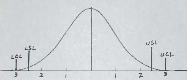 Aquí los límites de control caída fuera de los límites de la especificación, pero la media está bien centrada en el nominal.