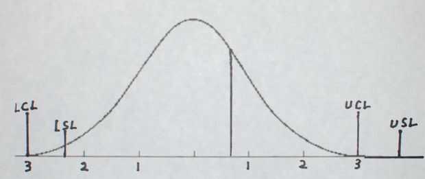 En esta ilustración el control límites caería dentro de los límites de especificación si la media se centró en el nominal.