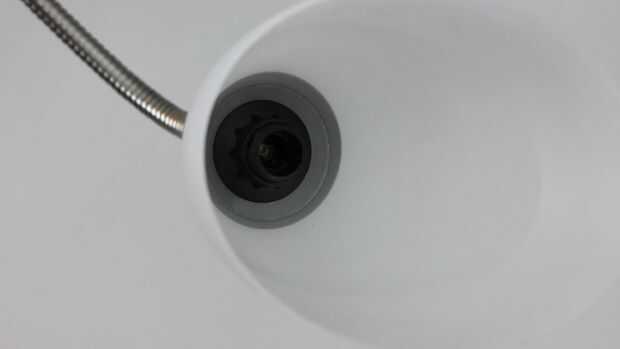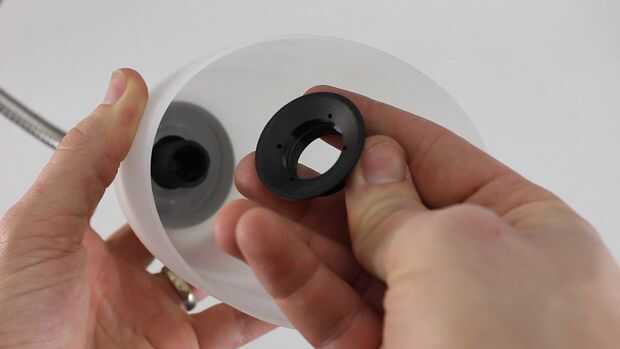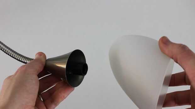A continuación retire la bombilla. Una vez que el foco está hacia fuera, mira dentro de la cubierta de la lámpara. En la parte inferior debe ser una gran tuerca de plástico que sujeta la cubierta de la lámpara en su lugar. Desenroscar esta tuerca y quite la cubierta de la lámpara.