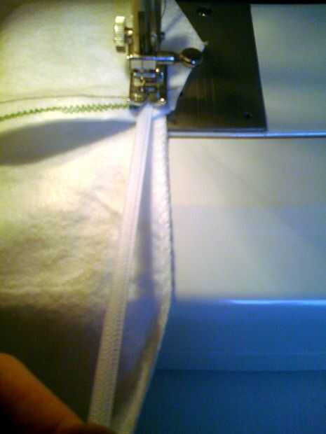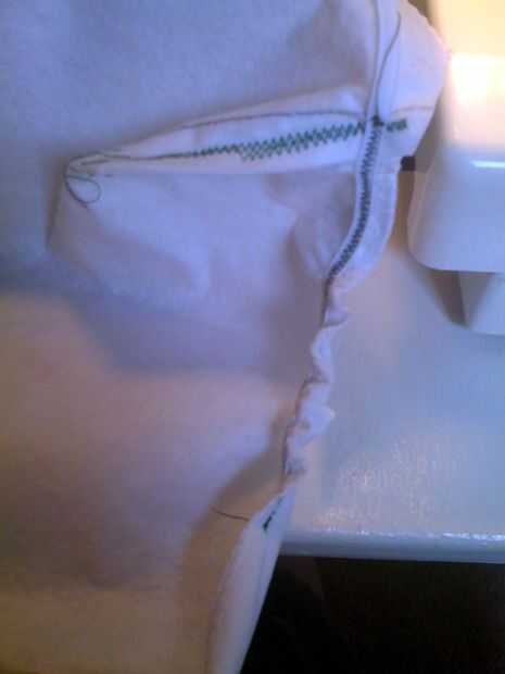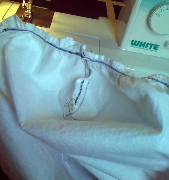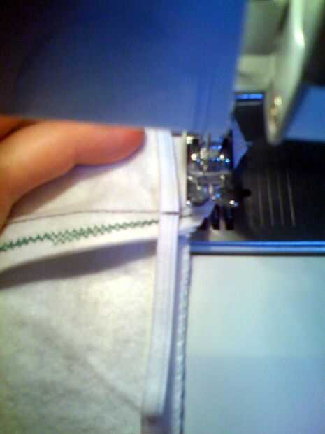 Luego, tire de un extremo del elástico en cuanto se alcance el borde de la tela y coser. Usé una puntada de zig-zag estrecha, que parecía funcionar bien.