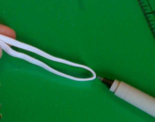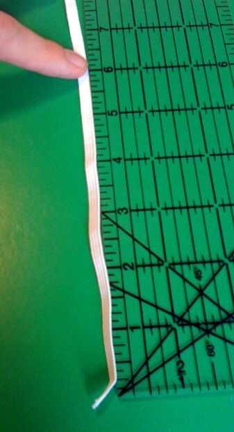 Corte 4 pedazos de elástico (utilicé la variedad de 1/4 de pulgada). Deben ser aproximadamente de 6 a 10 pulgadas de largo. Traté de 6 pulgadas, pero creo que un poco más de tiempo hubiera sido mejor.