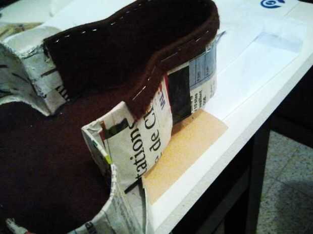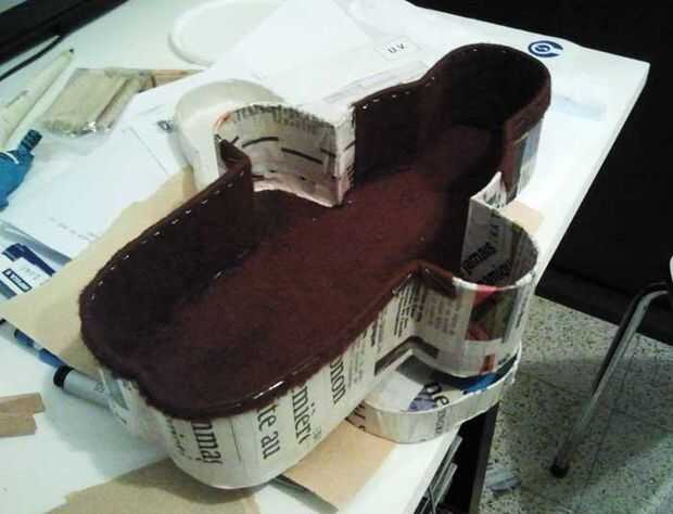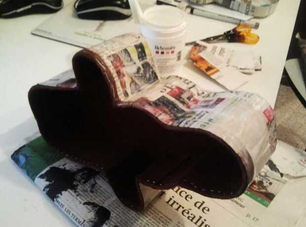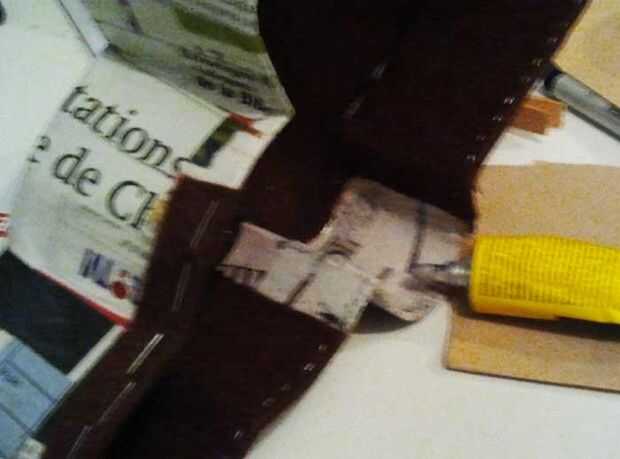 Los colgantes de aletas del paño en el exterior entonces deben ser cubiertos con una capa adicional de papel maché, que se detiene justo debajo del borde en el exterior y cubre una gran parte de los lados, por lo que la transición en la mayor franja de paño es alisada hacia fuera (ver imagen quinto).
