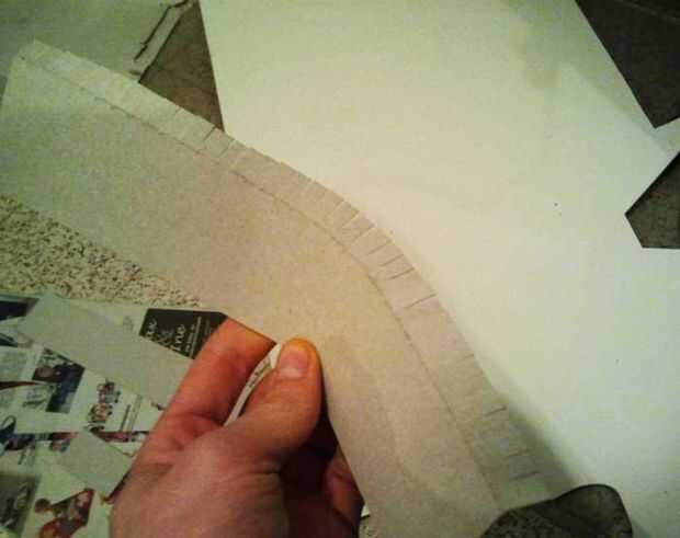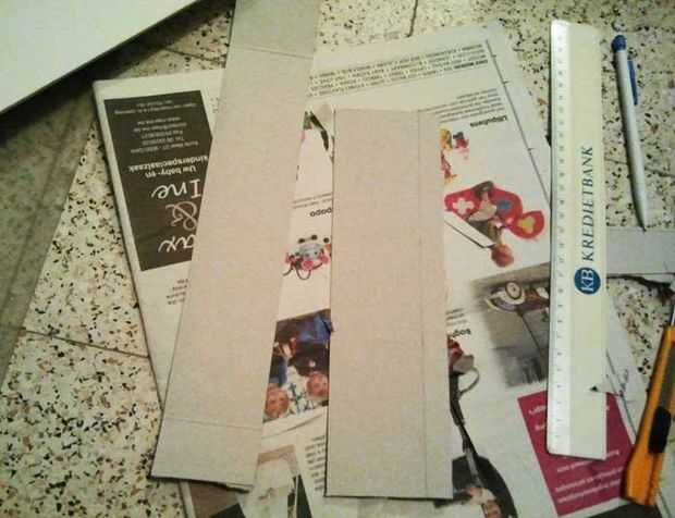 A lo largo de su regla, usando el cortador, dan a la línea un muy muy leve corte, lo suficiente como para que sea más fácil doblar el cartón a lo largo de