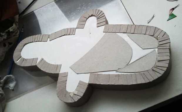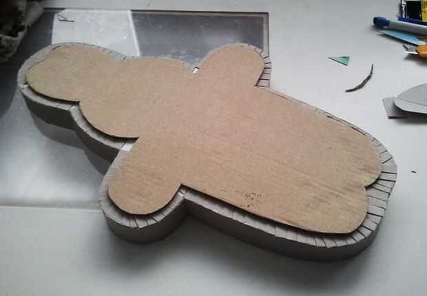 Pero primero, pegué algunas piezas de la misma cartulina utilizada para la tira de lado a la tapa, por lo que sería el nivel (ver primera foto).