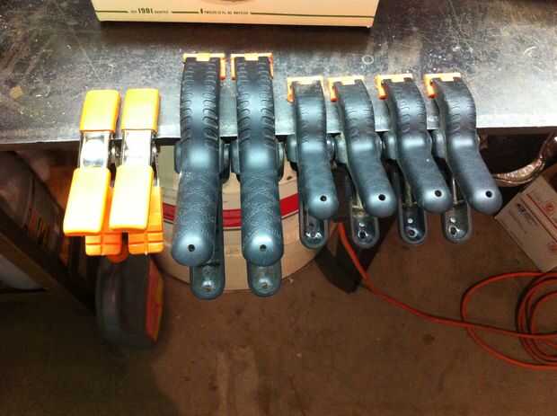 -(Optional) algo a con. Si eliges pegar, las abrazaderas son realmente útiles. Usé algunas abrazaderas de resorte.