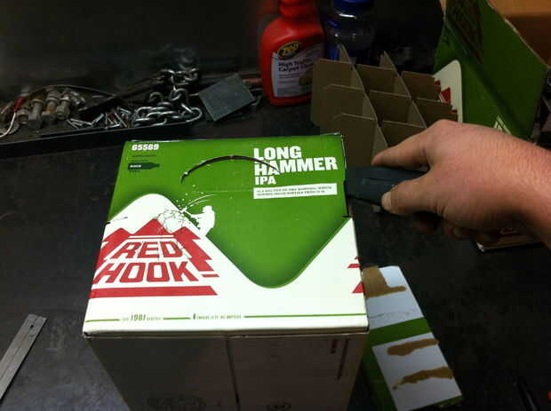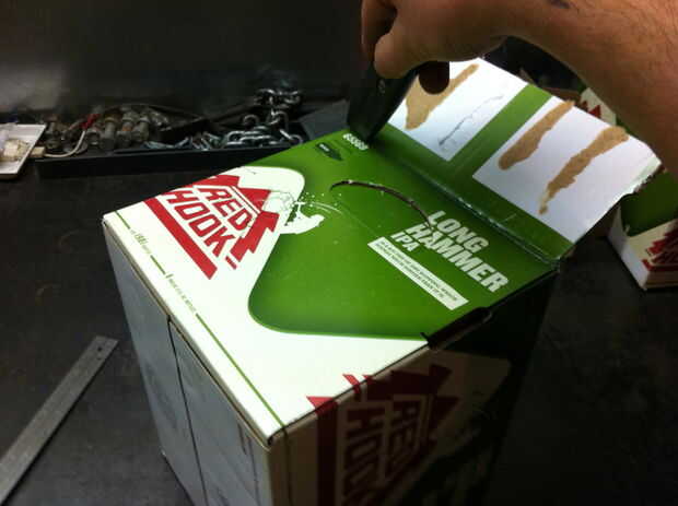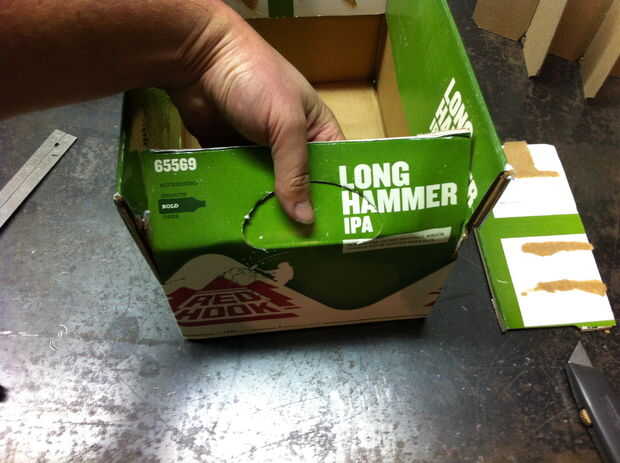 -(Sé que aún hay una aleta en esta foto pero fingir allí no es) en el lado que sólo corte la aleta de, mida la mitad y hacer marcas a ambos lados de la caja, o a través de todo el camino.