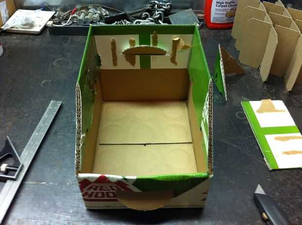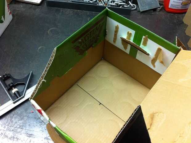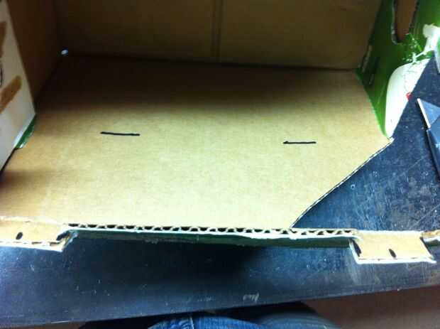 -Presione las lengüetas a través de cortes y dóblelo hacia abajo. Deben tipo de doblez con el lado si funciona correcto. Que tenga que hacer unos cortes verticales en el panel lateral de la ficha para derecho.