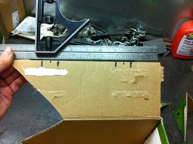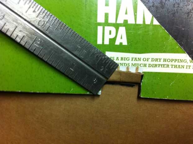 -Tire de un lado largo y marcar dos equidistantes de 1" ancho pestañas aproximadamente. 5" profundo.
