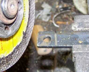 Como se puede ver, perforé el final de la 3/16 x 3/4 barra de stock con un agujero de 5/16 de pulgada.  Entonces yo cortarlo para hacer un cuadrado con un agujero.  Cuatro de éstos son necesarios.  No necesitan ser muy precisas.  Tres se utilizará como retenedores, como una tuerca permanente.  Uno se utilizará como separador