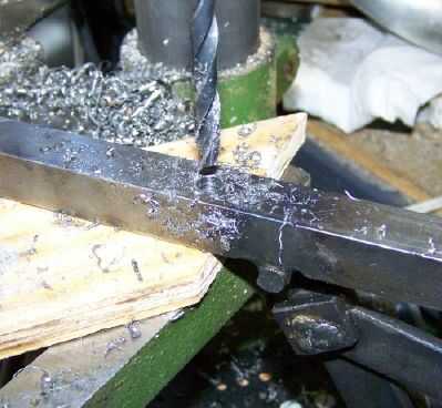 Un agujero de 1/4 de pulgada y tornillos en el extremo posterior muy del Cascanueces se aprovecha de las fuerzas cuando se agrieta una tuerca y es suficientes.  Aquí se puede apreciar el mecanismo al revés para taladrar detrás de eje de la palanca.