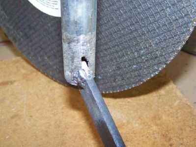 tenía un conducto eléctrico de thinwall pieza que funciona muy bien para un mango.  Con un disco abrasivo guié a un extremo de la tubería portacables a mano en la rueda de corte para hacer una ranura justo lo suficientemente amplia como para un ajuste apretado en el extremo superior de la palanca.  Yo lejos de tierra el galvanizado y soldado con autógena cuidadosamente el conducto a la palanca en la parte superior e inferior.  Mi mango es aproximadamente de 14 pulgadas de largo.  Es adecuado, pero de ninguna manera excesiva cuando se trata con nueces de macadamia.