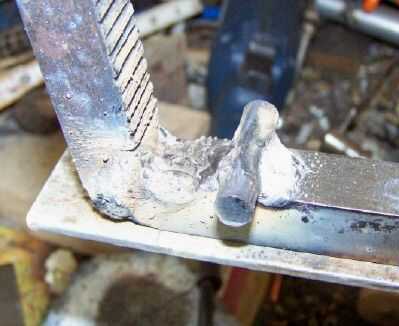 Corte un trozo de varilla de 5/16 de pulgada 1 pulgada de largo.  Use una escuadra para colocarlo en la base del Cascanueces.  Centro para que la cantidad de saliente de la varilla es igual en ambos lados.  Soldar con autógena en ambos lados del eje de buena penetración en la base del Cascanueces.