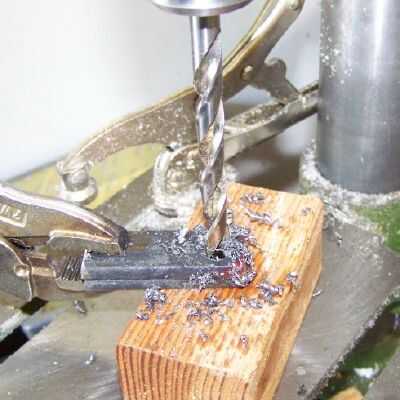 Corte dos pedazos de 2 pulgadas de largo de la acción de la barra de 3/16 x 3/4 pulgada.  Empotrar y taladre un agujero de 5/16 de pulgada por tanto cerca de un extremo.  A moler todas las rebabas.