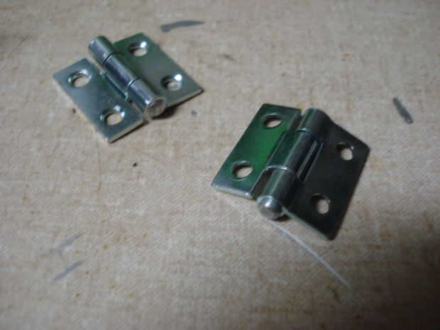 Coloque las bisagras con los barriles de pin mirando hacia afuera, con remaches (como hice yo) o los pernos.