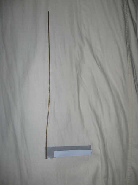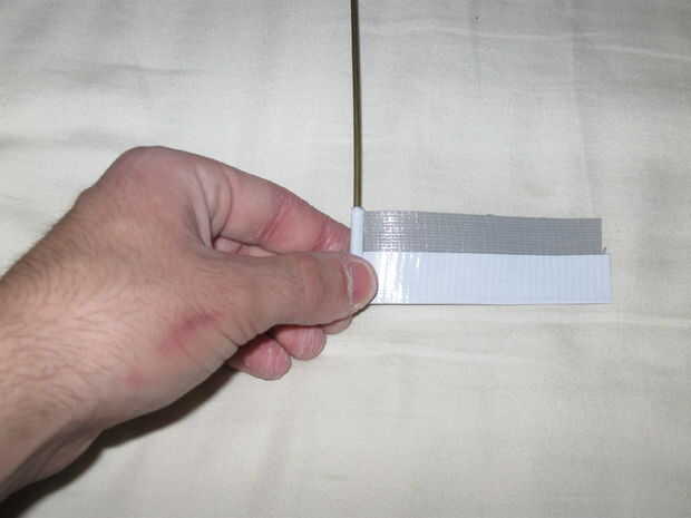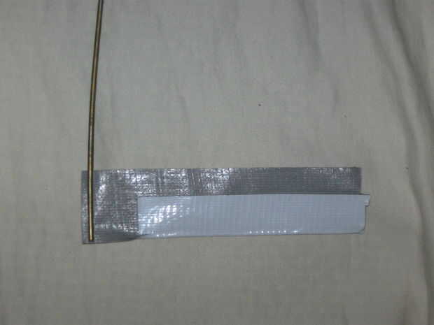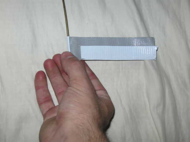 Ahora vas a pegar la cinta a la pieza de alambre. Elegir un extremo del alambre y lugar en la cinta como muestra: Luego enróllelo hasta que golpeó la parte lisa y detener.
