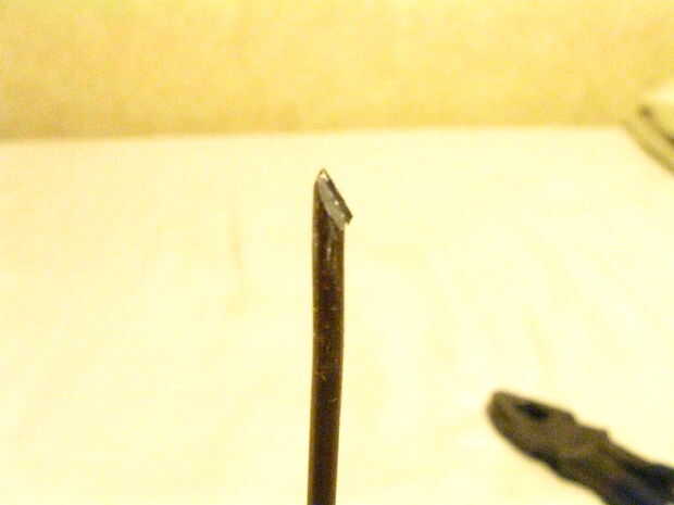 La forma más fácil de hacer el punto sobre este dardo es sólo la punta del dardo se cortan en un ángulo de sesenta grados con los pares de alicates y cierra de forma inesperada.