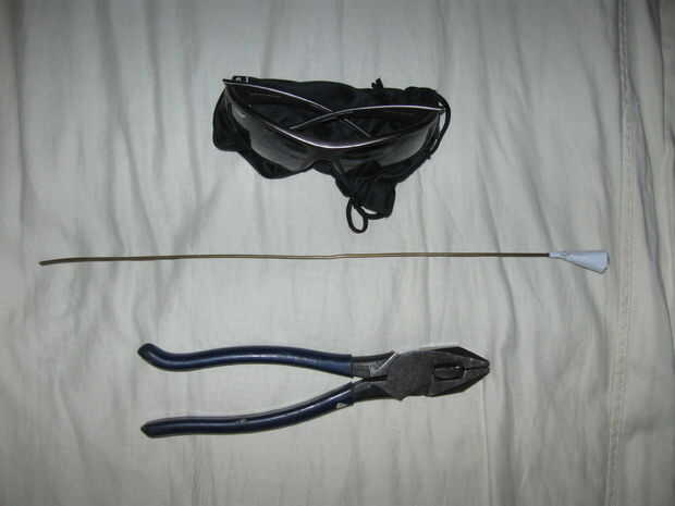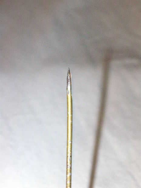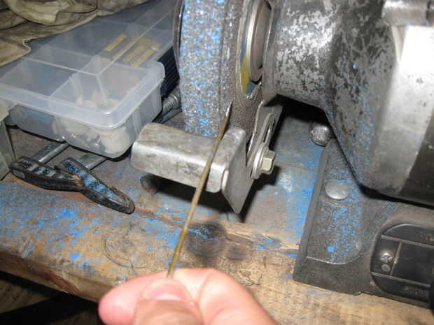 Todo lo que necesitas hacer para este paso es (después de que las gafas de seguridad) utilizar la muela para hacer el extremo libre del hilo en una punta muy afilada malvado.
