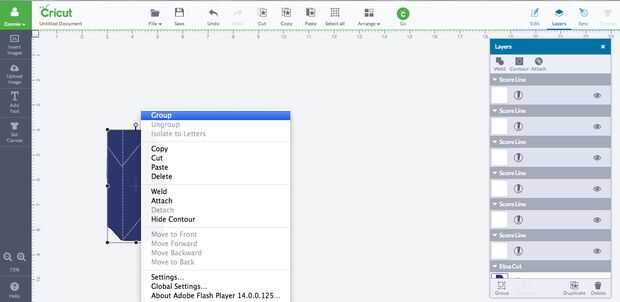 Después de que usted está satisfecho con las líneas de posicionamiento, mantenga pulsada la tecla Mayús y haga clic en todas las líneas de puntuación en el panel capas de la derecha. Entonces las formas con el botón derecho y seleccione "grupo". Ir a la parte superior del panel capas y también hacer clic en el botón "adjuntar".