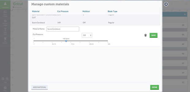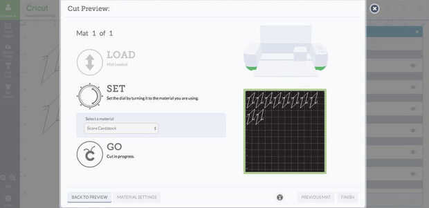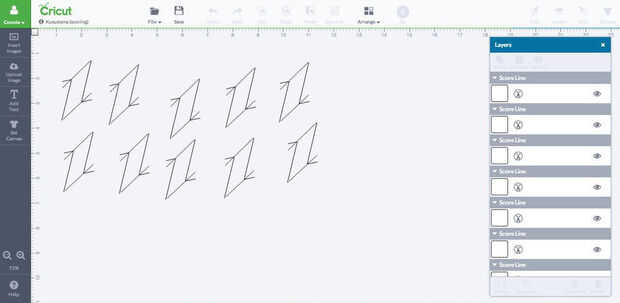 Hacer duplicados de diez y en el panel capas, asegúrese de que las líneas se cortan y no marcar más (haga clic en el icono de pluma-como y cambiar a tijeras). Entonces dejó su máquina de cortar, asegurándose de que su presión se establece en la cantidad correcta (para mi Cricut explorar, sitúe el selector en "custom" y deslizar el cursor a 149). Otra vez, si dejas el posicionamiento solo, voy sobre todo estar bien, pero ver el siguiente paso.