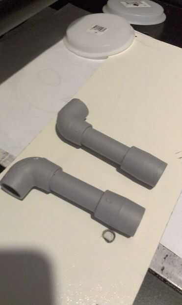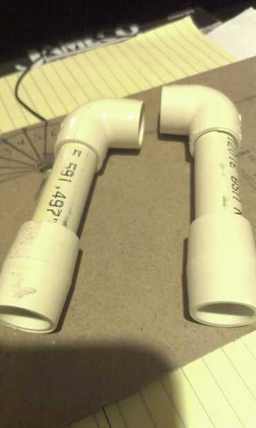 corte (2) 2 1/2" de tubo de PVC de 1/2" y 1/2" codo de un lado y el acoplamiento en el otro lugar. (ver figura 12,13,14) Una vez ambas piezas, es momento de pintarlas. (Utilicé spray de imprimación automotor)